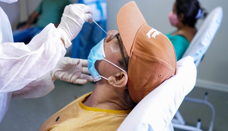 A testagem em massa foi direcionada para pessoas que apresentavam sintomas leves, com a oferta de teste de antígeno. O exame é feito a partir de uma amostra coletada pelo swab nasal e o resultado fica pronto em 15 minutos.