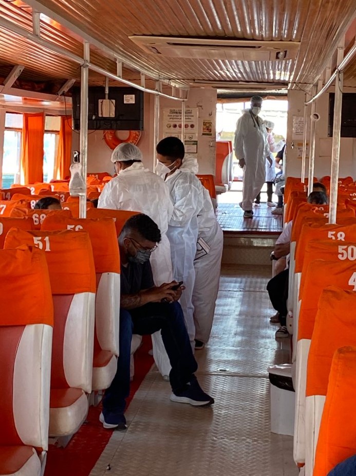 Para a realização dos testes, uma equipe da Secretaria de Saúde, foi enviada para acompanhar a chegada da embarcação com a comitiva.