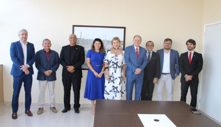 Presentes na reunião: o coordenador do Complexo e titular da Promotoria de Urbanismo, promotor de Justiça André Araújo; os promotores de Meio Ambiente, Marcelo Moreira e Afonso Pereira; e os promotores da Saúde, Fábia Nilci e Wueber Penafort.