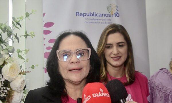 Damares destacou que Aline Gurgel é a maior estrela do Republicanos no Brasil, ao aceitar concorrer à gestora de uma capital. “Vem com a gente. Vamos fazer história com uma mulher prefeita”, incentivou.