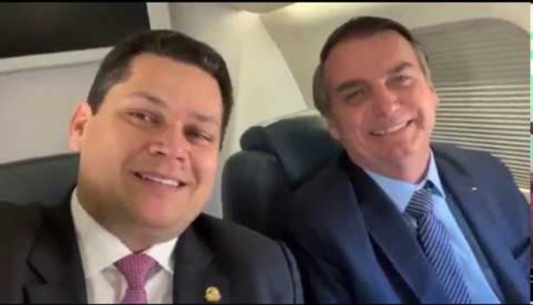 Ao lado do presidente do Congresso Nacional, senador Davi Alcolumbre (DEM/AP), o presidente da República Jair Bolsonaro envia mensagem ao Amapá sobre sua participação na cerimônia de inauguração do novo Aeroporto Internacional de Macapá.