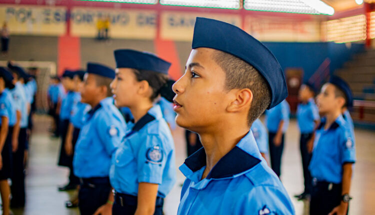 O ato simbólico acontece a cada bimestre e identifica o ano e série dos estudantes, além de marcar oficialmente a troca de uniforme provisório para efetivo.