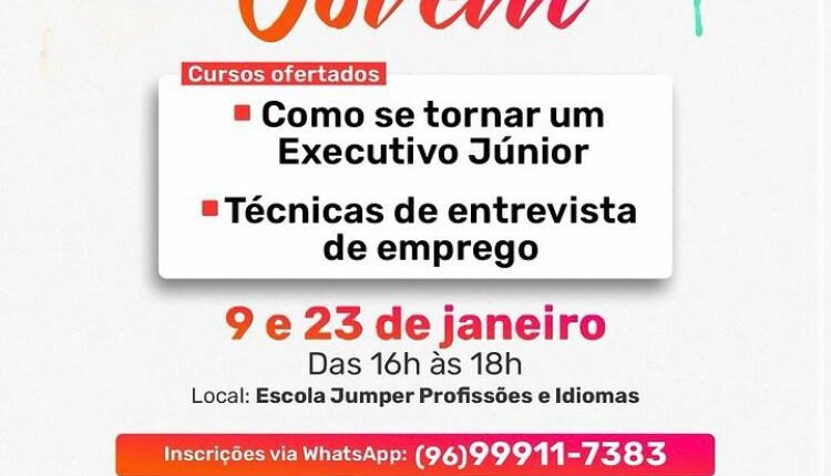 Os cursos vão acontecer em parceria com a Escola Jumper Profissões e Idiomas, localizada na Av. Coaraci Nunes, 334 – Centro. Todo o processo de inscrição será de forma on-line pelo WhatsApp: (96) 99911-7383.