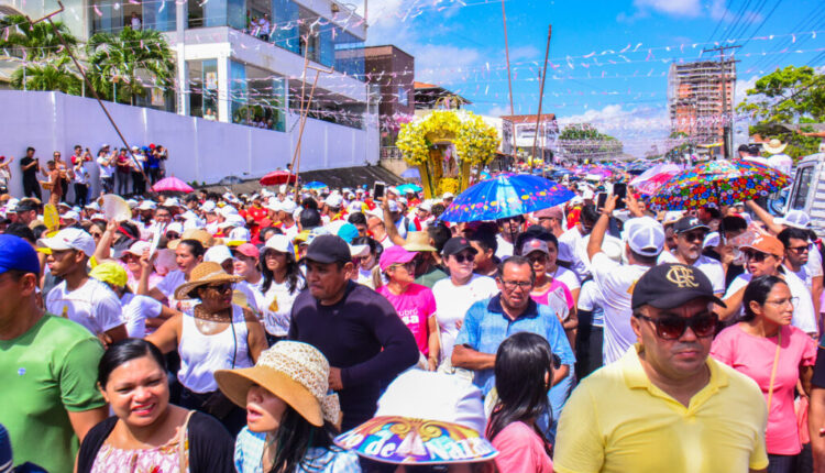 Milhares de pessoas acompanhavam a Berlinda toda ornamentada com flores brancas e amarelas tão delicadas quanto a pequena Imagem Peregrina de Nossa Senhora de Nazaré, romeiros a pé, em bicicletas, na frente de suas casas.