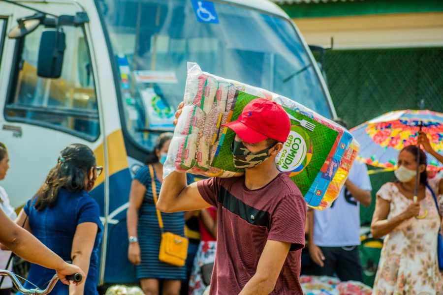 Nos últimos dias, o Governo do Estado enviou 5.628 cestas de ajuda humanitária e do Programa Comida em Casa para distribuir à população em vulnerabilidade social e aos trabalhadores informais. Elas são compostas por 16 itens diferentes, incluindo arroz, feijão, óleo, leite em pó, macarrão, açúcar, café, farinha, e entre outros produtos, que somam 43 volumes que cada família vai receber.