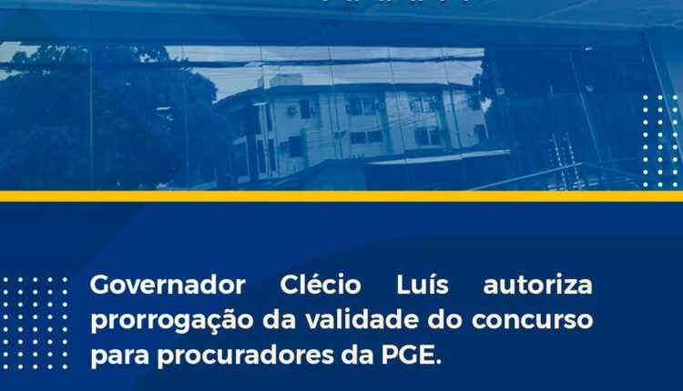 O governador do Amapá, Clécio Luís, autorizou a prorrogação do concurso público para novos procuradores da Procuradoria-Geral do Estado do Amapá (PGE). O prazo, que encerraria em 30 de junho de 2023, foi estendido por mais dois anos.