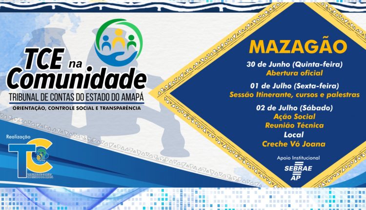 A quarta edição do TCE na Comunidade já tem data marcada. O município de Mazagão vai sediar nos dias 30 de junho, 1 e 2 de julho a próxima versão do projeto que leva capacitações, sessão plenária, reunião técnica e ação social aos municípios do Estado.