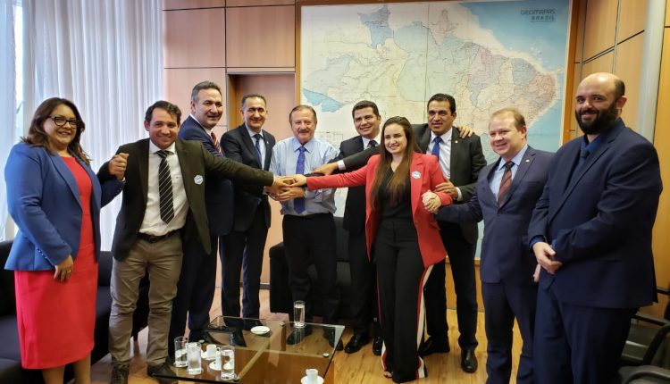O ministro-chefe da Secretaria Especial de Assuntos Fundiários, Nabhan Garcia, recebeu nesta terça-feira (16) uma comitiva de lideranças políticas e empresariais do Amapá em seu gabinete, no edifício do Ministério da Agricultura, em Brasília. Em pauta, a regularização fundiária das terras que a União está repassando ao Estado. O grupo era formado pelo governador do Amapá, Waldez Góes (PDT), o senador Lucas Barreto (PSD), os deputados federais André Abdon (PP) e Luiz Carlos (PSDB), bem como os deputados estaduais Jesus Pontes (PTC) e Aline Serrão (DEM). O novo presidente da Associação dos Criadores do Amapá (ACRIAP), Agnaldo da Silva, também integrava o grupo.