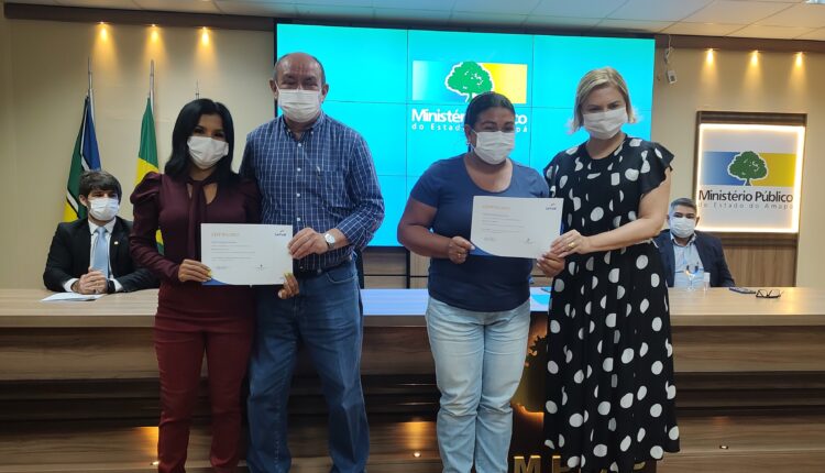 A procuradora-geral de Justiça do Ministério Público do Amapá (MP-AP), Ivana Cei, e o presidente da Federação do Comércio de Bens, Serviços e Turismo do Amapá (Fecomércio), Ladislau Monte, entregaram certificados aos participantes dos cursos de “Manicure e Pedicure”, “Panificação” e “Limpeza e Conservação” realizados pelo Serviço Nacional de Aprendizagem Comercial (Senac), em parceria com o MP-AP. O evento ocorreu nesta segunda-feira (21), no auditório da Procuradoria-Geral de Justiça (PGJ) – Promotor Haroldo Franco.