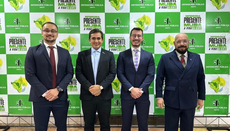 Na foto, os procuradores estão ao lado do defensor público-geral, Dr. José Rodrigues, e do desembargador do Tribunal de Justiça do Amapá, Dr. Rommel Araújo que palestrou sobre o papel da Defensoria Pública para a garantia dos Direitos Constitucionais na Justiça 4.0.