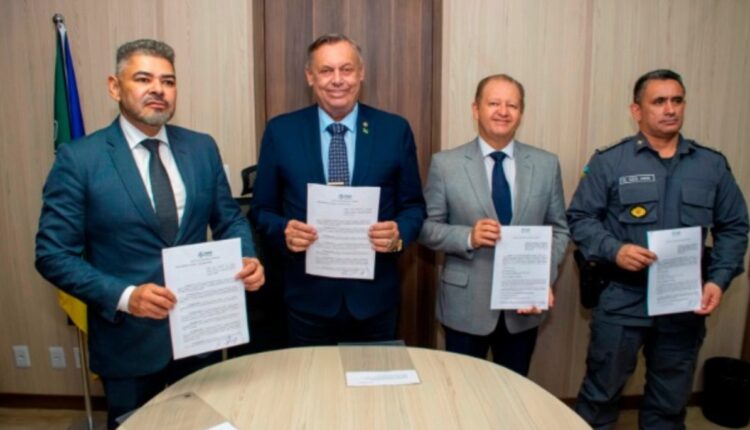 No gabinete da presidência do TJAP, o desembargador presidente Adão Carvalho; corregedor-geral do TJAP, Jayme Ferreira; e o comandante da PM-AP, coronel Costa Júnior, também assinaram o Ato e mais os Acordos de Cooperação de números 022/2024 e 034/2024.