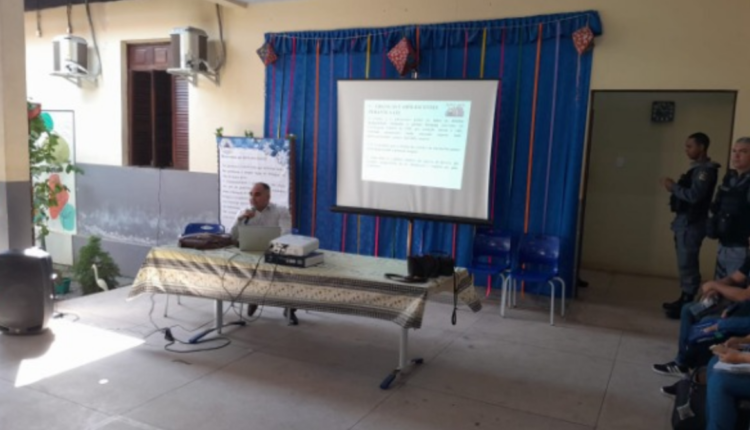 O membro do Ministério Público do Amapá (MP-AP) foi recebido pela diretora da Escola, Alcemiro Leal Barata, para a palestra intitulada “Atos Infracionais: Prevenção e Responsabilização”, com participação de membros do Conselho Tutelar de Amapá e da Polícia Militar (PM/AP).