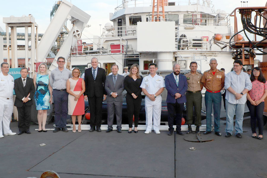 Na ocasião, o comandante do navio, capitão de fragata Rodrigo Mynssen fez uma rápida apresentação sobre a embarcação. Ele falou um pouco das missões desempenhadas pelos militares. “O navio possui diversos equipamentos que vão desde a área de oceaonogarfia, passando pela geologia marinha, até a hidrografia. Com os instrumentos, é possível coletar informações sobre temperatura, salinidade, dissolução de oxigênio e a pressão do fundo marinho”, explicou.