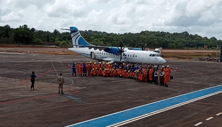 Avião com primeira equipe de companhia de exploração de petróleo chega ao aeródromo de Oiapoque.