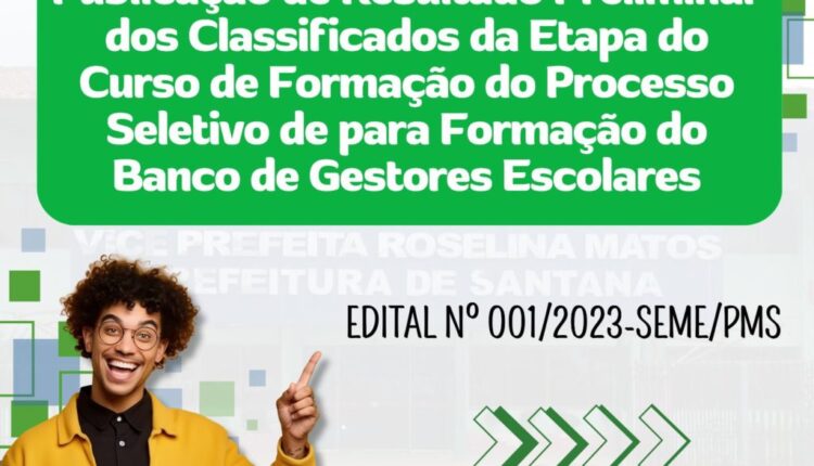 A Prefeitura de Santana divulgou, nesta terça-feira, 16, o resultado preliminar dos candidatos classificados na etapa do curso de formação do processo seletivo para a instituição do banco de gestores escolares.