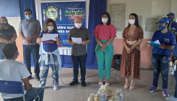 A Secretária Municipal de Assistência Social, Priscilla Azevedo, e o Prefeito de Santana, Bala Rocha, estiveram presentes nesta terça-feira, 25, na Escola Estadual Augusto Antunes para a entrega de 2.570 cestas básicas do programa Comida em Casa do Governo do Estado.