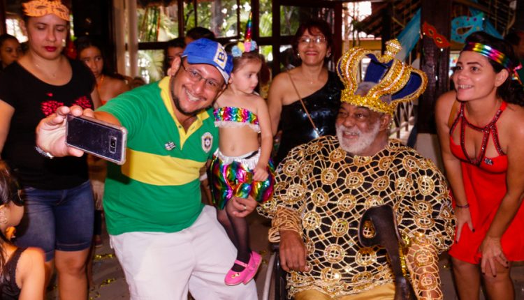 Um dos momentos mais aguardados do Sacaca na Folia foi a chegada de Raimundo Tavares, 65 anos, o Rei Momo do Carnaval amapaense. Ele assistiu parte do evento e se emocionou com a recepção do público.