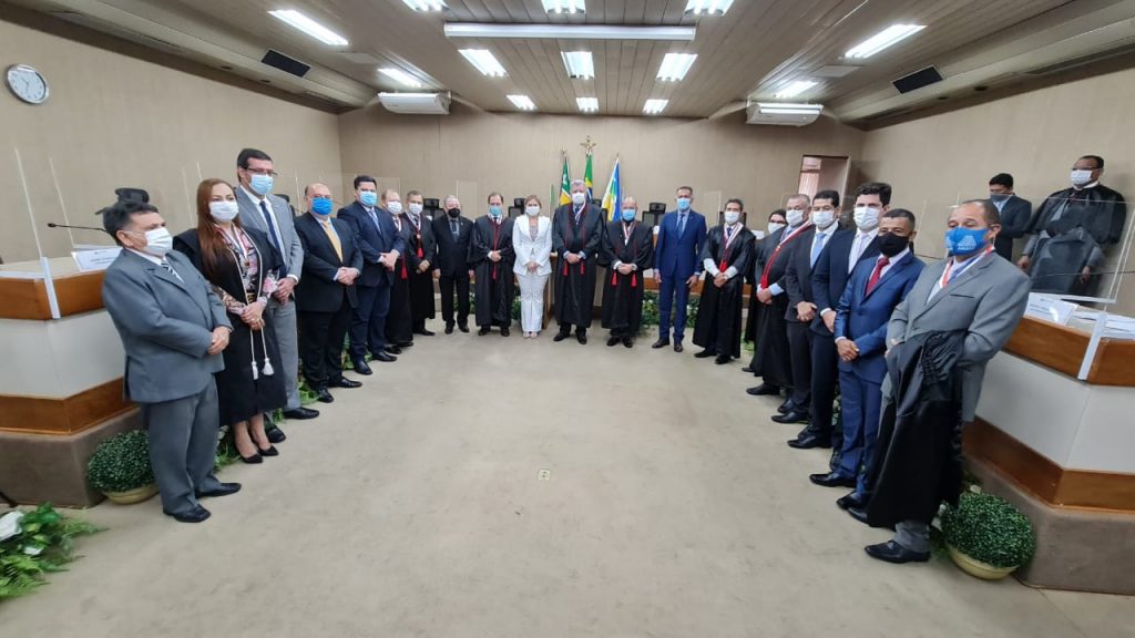 O Presidente Kaká Barbosa compôs a Mesa da 852ª sessão extraordinária e solene de posse do novo desembargador. A solenidade aconteceu na manhã desta segunda-feira (2/8/2021), no auditório do Tribunal e contou com a presença de diversas autoridades.