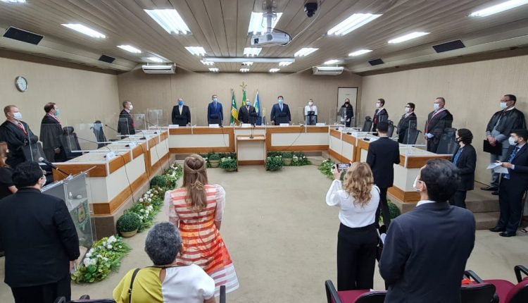 O Presidente Kaká Barbosa compôs a Mesa da 852ª sessão extraordinária e solene de posse do novo desembargador. A solenidade aconteceu na manhã desta segunda-feira (2/8/2021), no auditório do Tribunal e contou com a presença de diversas autoridades.
