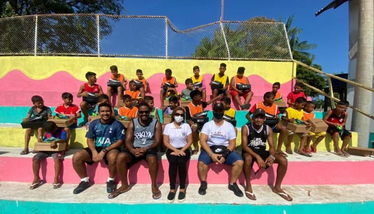 “Às vezes passamos muito tempo em casa sem ter o que fazer, e vindo aos treinos ficamos mais felizes”, contou o adolescente Vitor Jackson. O garoto, de 15 anos, integra o projeto “Craques para a Vida”, que atende crianças e adolescentes no Arquipélago do Bailique. O programa social foi contemplado em mais uma ação da Jornada Fluvial, quando foram entregues kits para futebol – como chuteiras, caneleiras, cones e coletes – aos participantes da iniciativa.
